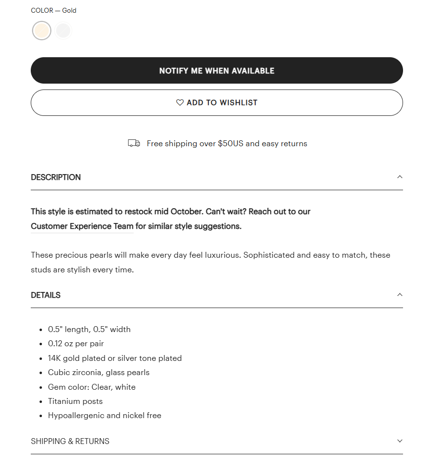 We list the dimensions of each style on their product page under the Details tab. You’ll also find on this tab the specifics of the materials used for each style, and where applicable, the weight.